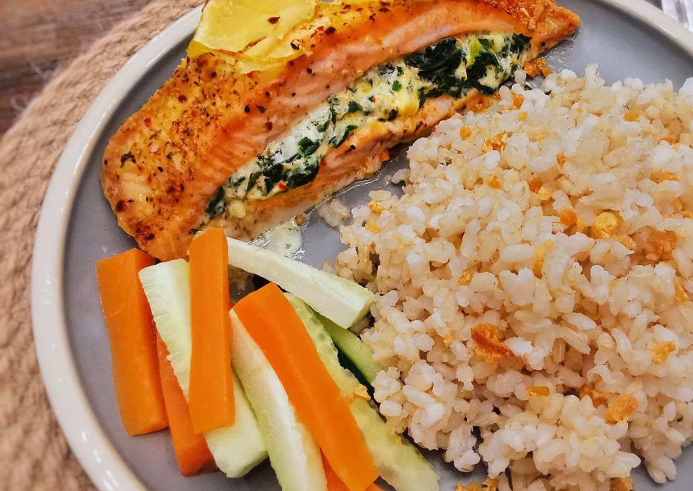 As for the number of servings that can be served to make Spinach Stuffed Salmon is 1 pax per 200gm. So make sure this portion is enough to serve for yourself and your beloved family.