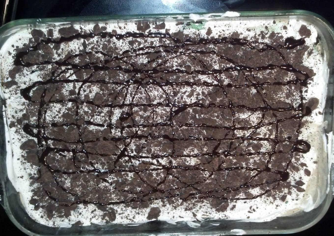- spread crush oreos on top of ice cream
