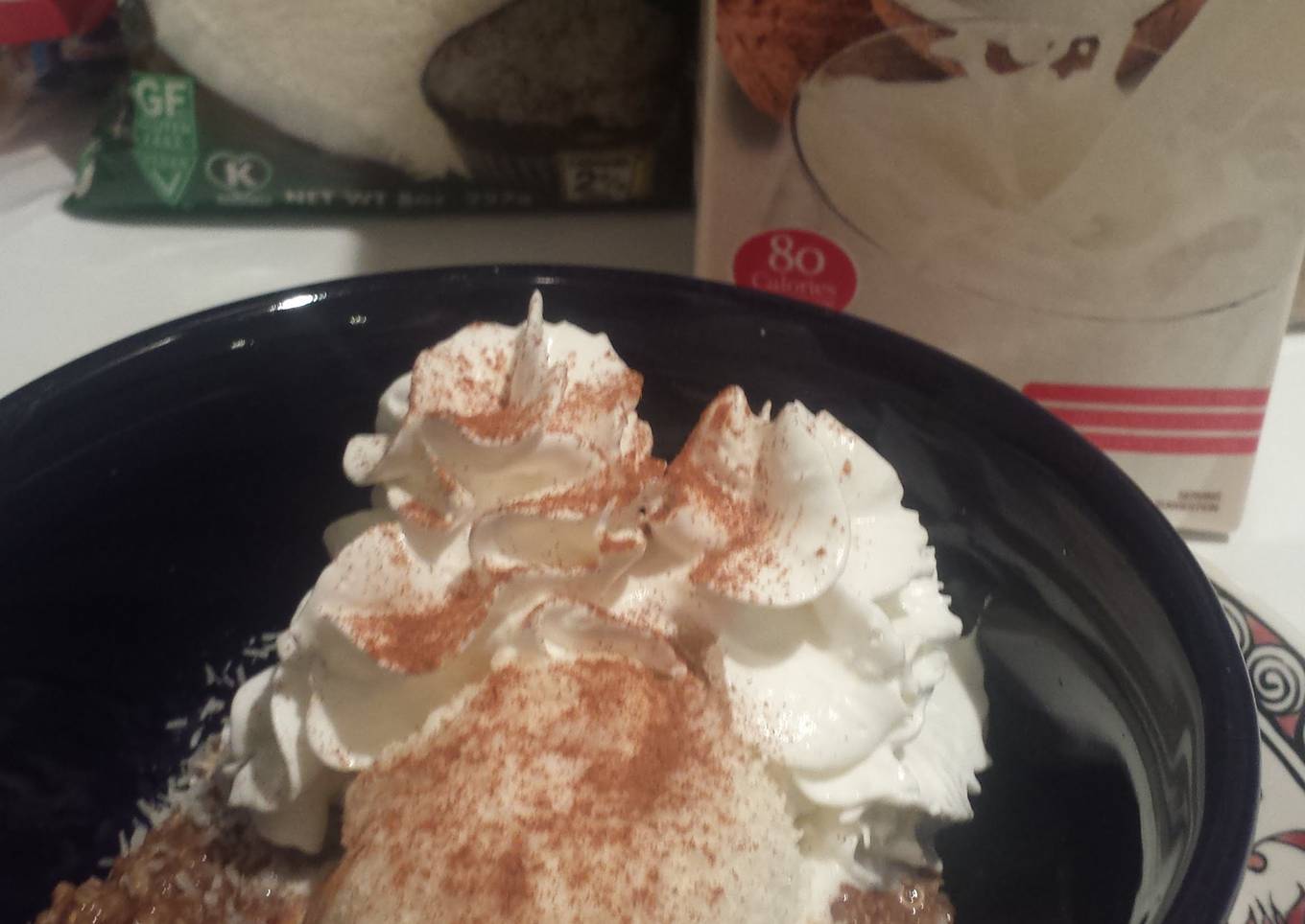 - Add cocoa powder. Stir in a little extra coconut milk if it seems too thick for your liking. Sprinkle the shredded coconut, brown sugar and cinnamon over a dollop of vanilla ice cream and whip cream on top!!