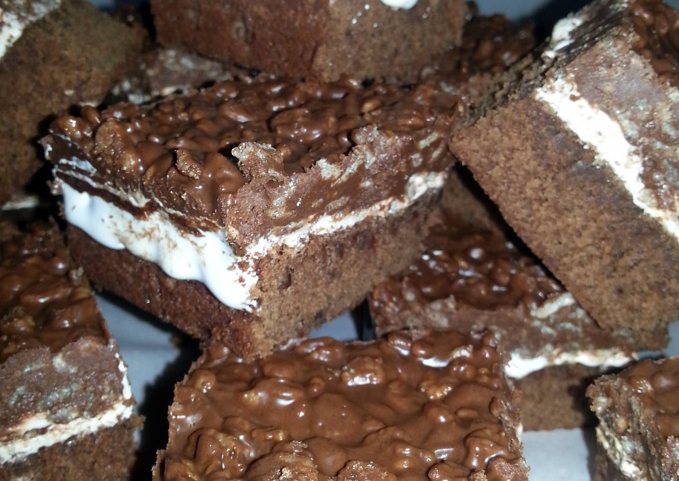- Spread into a 13x9" baking pan for 24-28 minutes or until toothpick comes out clean ( do not overbake) cool pan on. Wire rack. Spread marshmallow cream over Cooled brownies.